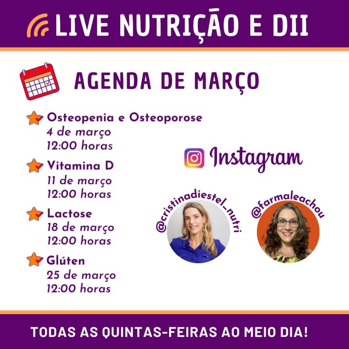 Quinta-feira passada conversamos sobre osteopenia e osteoporose. Aprendemos, entre tantas informações importantes, que a prevenção é muito importante pois são doenças silenciosas. Amanhã, quinta-feira (dia 11), às 12:00 horas, vamos conversar sobre a Vitamina D.