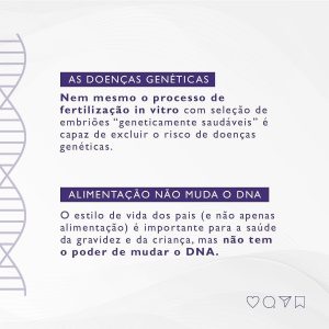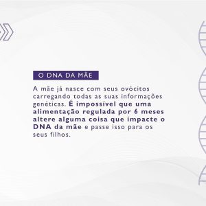 Existe alguma dieta que zere possíveis doenças genéticas? Não! Nenhuma mudança alimentar que os pais façam tem o poder de mudar os genes de seus filhos antes de ele nascer!