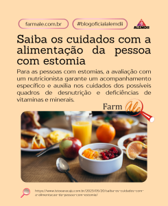 Cuidados com a alimentação da pessoa com estomia https://farmale.com.br/2023/05/21/alimentacao-estomia/ https://farmale.com.br/2023/05/21/alimentacao-estomia/#respond Sun, 21 May 2023 23:00:03 +0000 https://farmale.com.br/?p=40681 Para as pessoas com estomias, a avaliação com um nutricionista garante um acompanhamento específico e auxilia nos cuidados